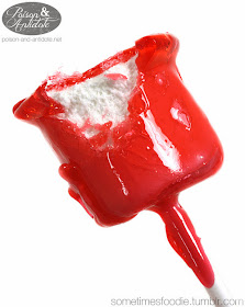 The packaging is simple, just a clear cellophane bag, but inside is a fluffy marshmallow covered in candy apple coating!