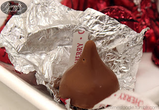 The foil on these Kisses seemed to be thinner, because they tore apart very easily. Inside, there is milk chocolate Kiss with a little hole at the top. Traditional cherry cordials are not filled via injection. The center starts out as a solid and becomes a liquid. Since I have found a little hole on every kiss I have opened I can’t help but think these are injected with filling, or require some sort of air hole.