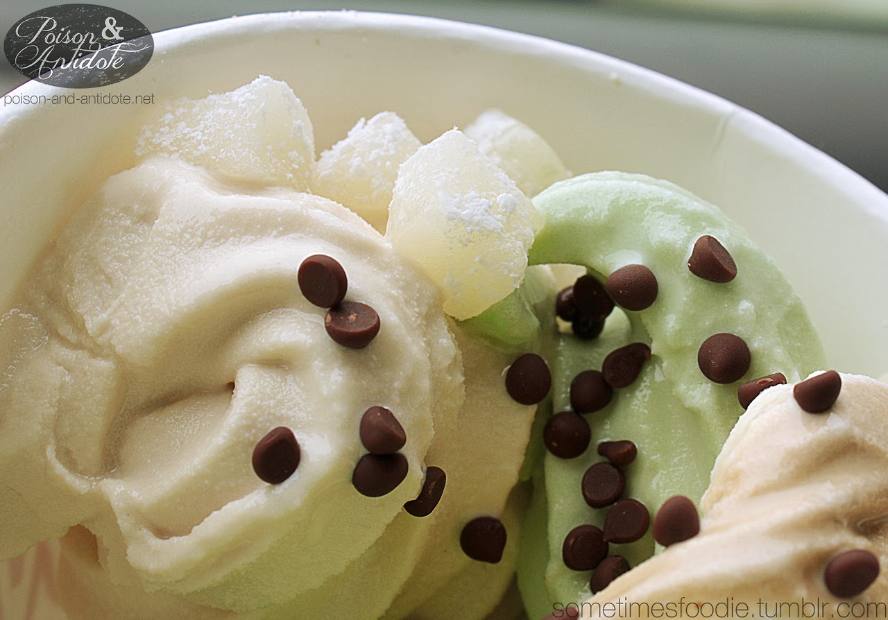 Although the flavors were a bit lack-luster on their own, when mixed together they were really yummy. The three flavors combined nicely and created a fancy iced coffee frozen yogurt. It was like a mix of a caramel latte with a touch of mint.