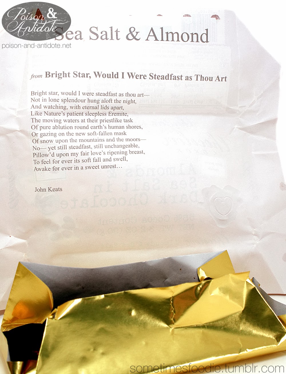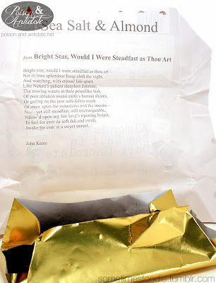 The poem is written on the backside of the paper wrapping, and this time I received a love poem written by John Keats. I could really see English majors or book lovers enjoying this literary addition to their chocolate fix.