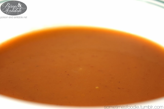My first thoughts were that this box is pretty small. When I picked it up it felt like I was holding a box of Pop-Tarts, but it actually contains about three servings of soup. For $1.79, that's not too shabby. The price may be right (ha) and the portioning is decent, but the design is a little lacking. This box is stuck in between modern packaging and vintage design, neither one is fully realized and the whole box suffers from the same monotone color issues as the pumpkin macarons. It's safe to say, I don't care for the package design, but as far as functionality, this was super easy to open and pour.