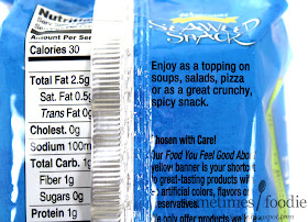 Inside the foiled bag, there is a plastic protective tray to keep your brittle seaweed sheets in one piece. I like the added protection from the plastic, but I don't think this little tray is recyclable in my area. (Although I have been putting it out with my plastics anyway.) If it isn't recyclable, that might be a problem for me. I've eaten 8 packages already, so that's 8 plastic trays that just pile up in the trash. I feel bad causing so much waste, but I really love these little seaweed snacks. I'll edit this post once I find out for sure.