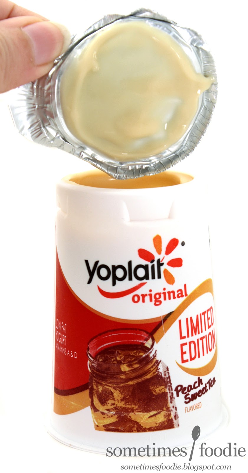 I removed the foil cap and the yogurt inside was a creamy color, similar to tea with cream or peaches and cream. I tried to see if the smell was any different than a normal yogurt, but this smelled pretty generic. I can smell vanilla, a fruity hint of concentrated peaches, and the slightly tangy yogurt base. As far as I can tell, there's not tea-like aroma, but we'll see if it tastes any more authentic.