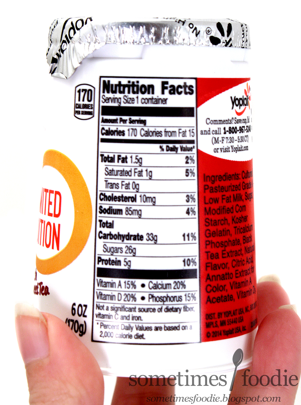 The reason why I was so interested in this yogurt was the tea aspect. I think tea infused yogurt sounds really appetizing and I was excited to see how this one would work out. Although I really like yogurt, and I certainly eat a lot of it, I rarely buy Yoplait. I think they have interesting flavors and a great design/marketing team, but the containers are really awkward to eat from. Seriously, what is with the little lip at the top of the container? It prevents me from scraping out the last bits of yogurt and it gets in the way of my spoon while I'm eating. I like that the brand has this iconic shape and look to it, but that little lip at the top of the container has got to go.