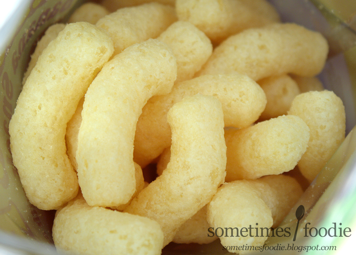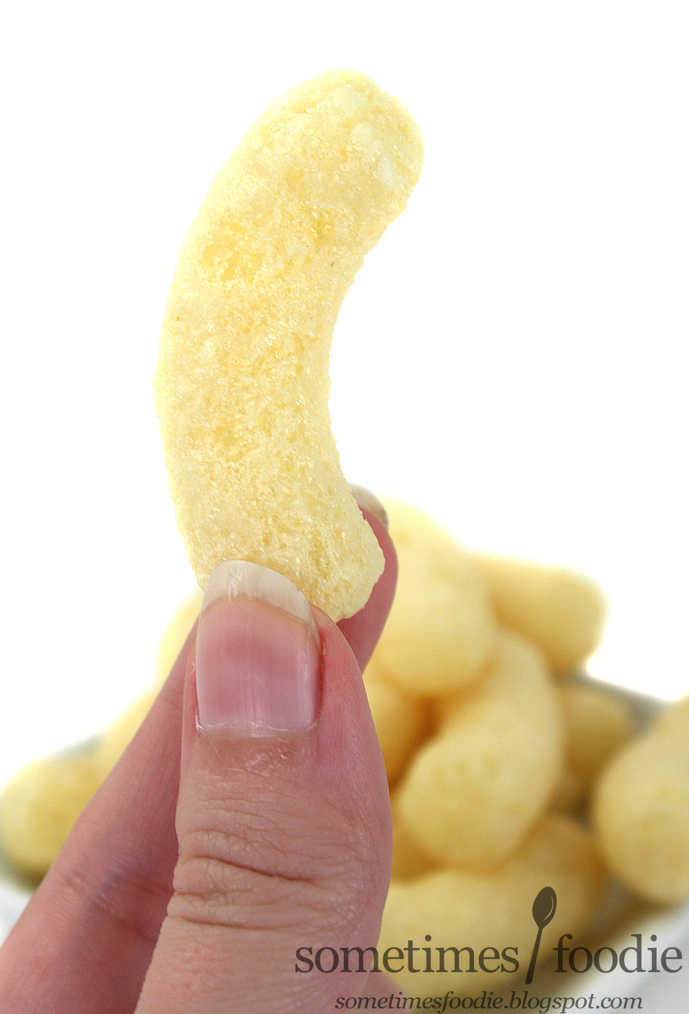 The curls looks just like white cheddar cheese curls that are available here in the states, but they smell sweet and artificial. Kind of like a banana flavored breakfast cereal.