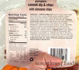 On a Pumpkin Scale of 1-5 (5 being the most pumpkin-y) I’d give this a 1. This is more-so cinnamon-y than anything else, and the sugary chips mixed with the icing-like dip is really sweet. I could taste little to no pumpkin in this at all, but it was an okay snack. I wouldn't buy it again, but i you really love cannoli in all flavors and forms, it could be worth looking into. (Although I know some Italians that would definitely turn their nose up at it.)