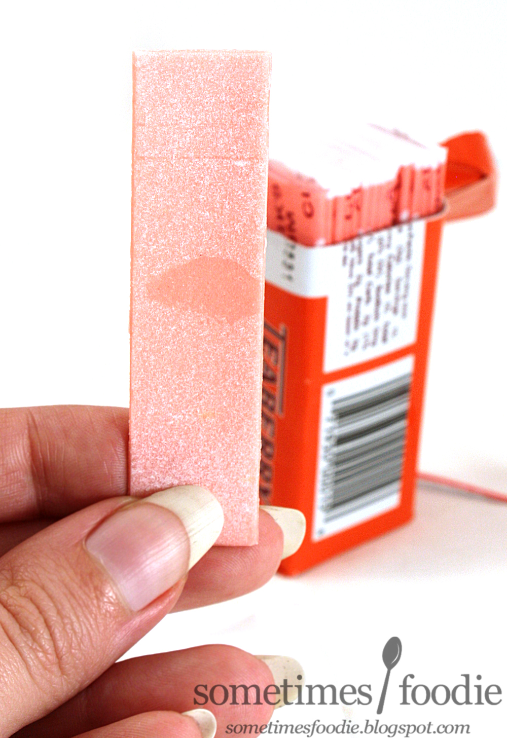 Inside, the patterned papers are a beautiful bubblegum pink color and they are printed with the brand name and logo for the gum. I was trying to remember the last time I ate a stick of gum that was wrapped in paper, and not plastic of foil, and I think the closest thing that I can remember was Fruitstripe Gum in the late 90's that had papers with temporary tattoos printed on them. (Man, I really want more of that gum. The flavor just doesn't last long enough., but I could have some wicked zebra tattoos.)