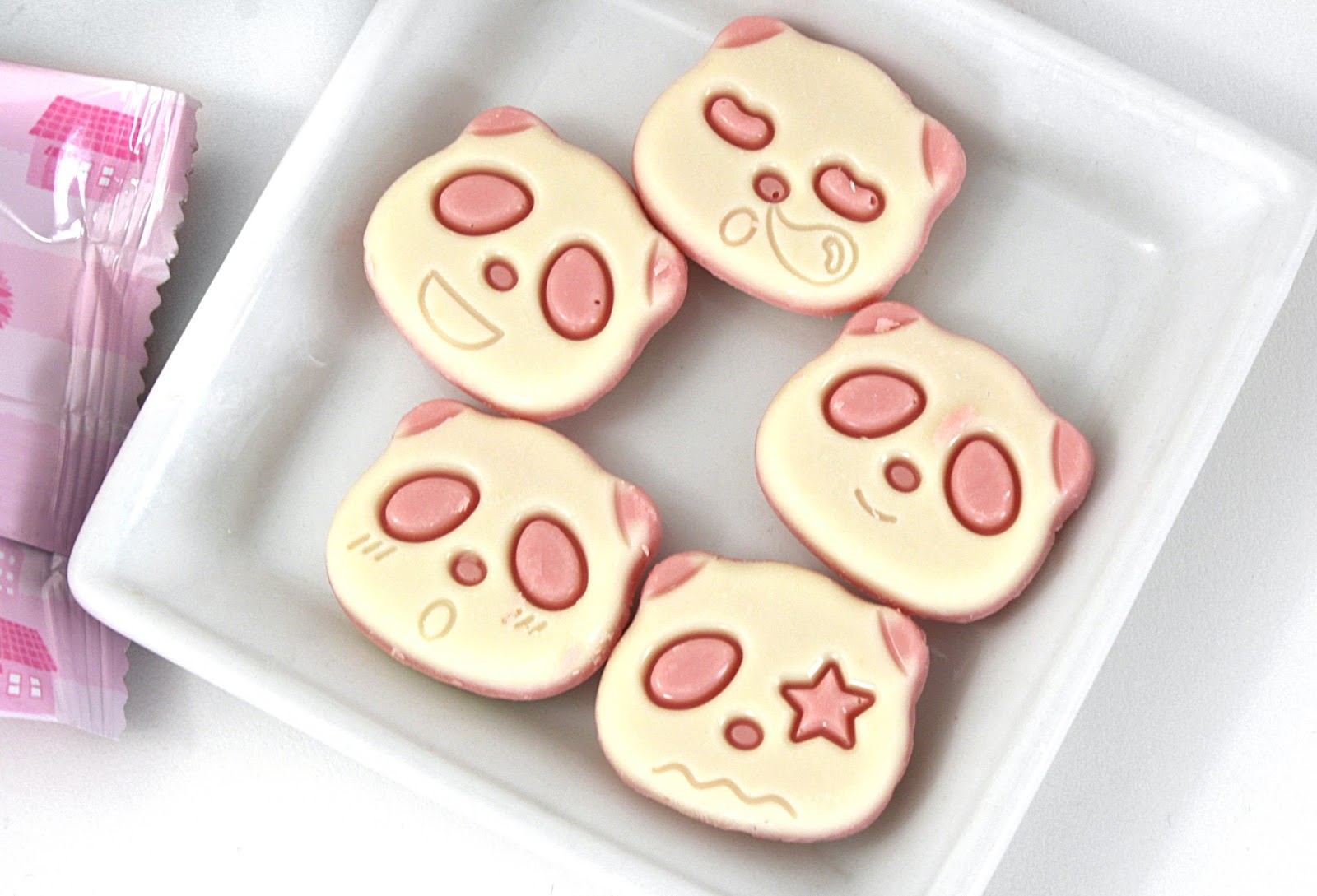 I took a bite, and they are substantially better than the chocolate pandas! They're far from the best thing I've ever eaten, but the strawberry flavoring is a lot better than usual. To me, this tastes more like strawberry ice cream than the usual artificial strawberry flavoring used for white chocolate, like Pocky, and I ended up liking these way more then and chocolate version.