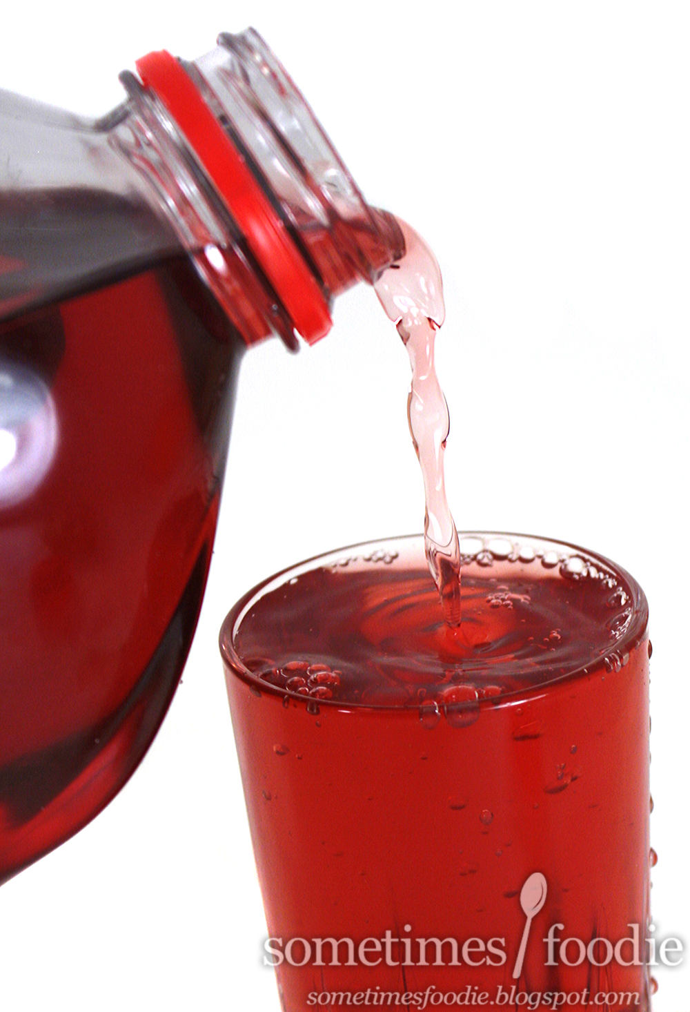 Notice anything in the pouring shot? (Hint: Look at the side of the glass.) I'm right handed, so I use my camera with my right hand and pour the beverages I review with my left. Usually, I'm quite good at it, but every once and a while I spill the product everywhere. This was one of those times, my photo-box was a cherry colored crime scene, but I have to say this sloppy photo is rather dynamic. I actually really like it. Maybe I should get messy more often.