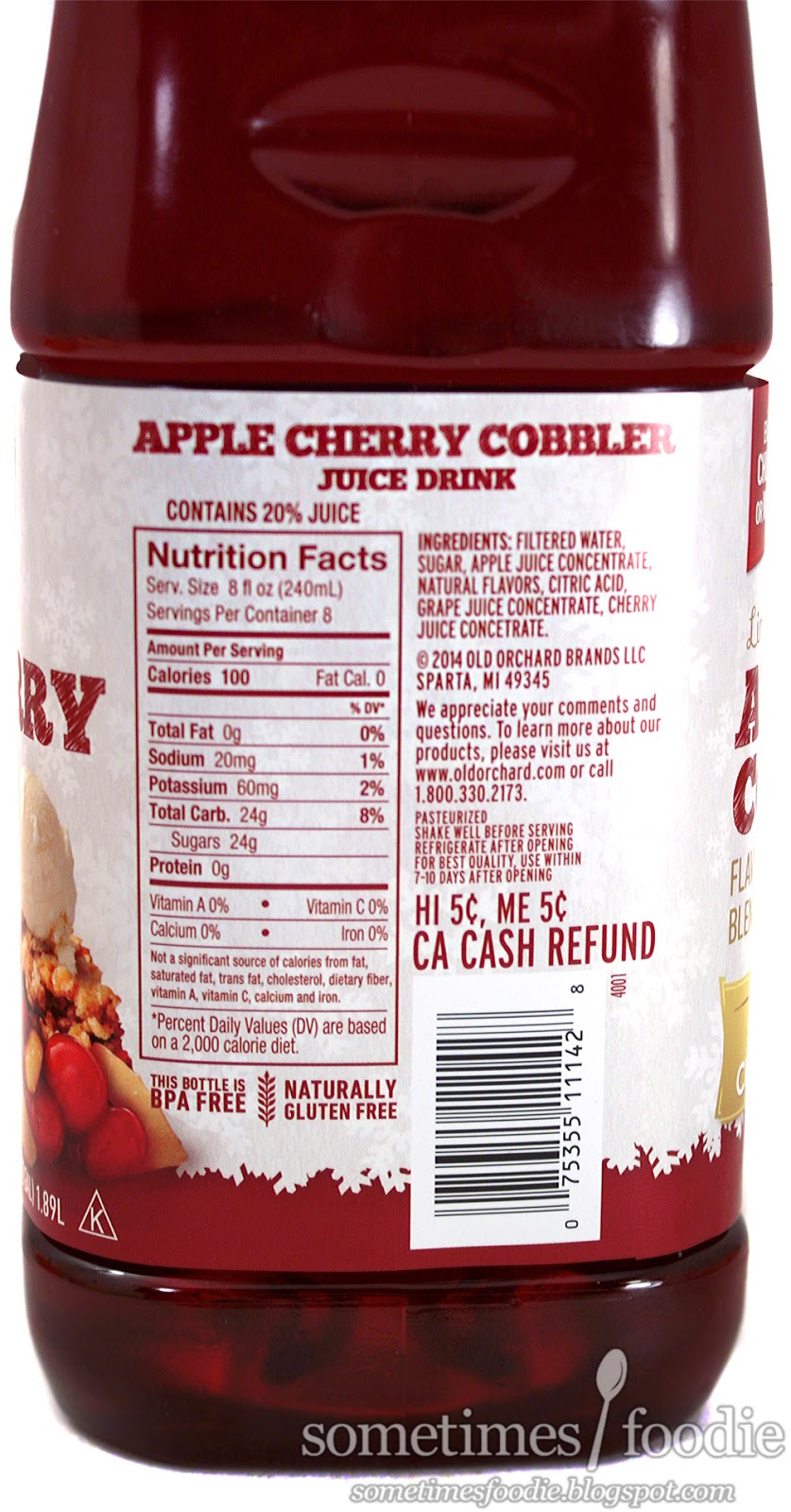 Old Orchard came out with a few different flavors this season, I already tried the Apple Pie version, reviewed here, and I wasn't too impressed. I originally bought that flavor because I remembered hearing about a similar product from YouTuber xSparkage, but it just didn't pan out. Cherry cobbler is one of my absolute favorite desserts, and although I've never had apple in it, I can't imagine it would make me love it any less. Hopefully this "juice drink" will taste a bit better.