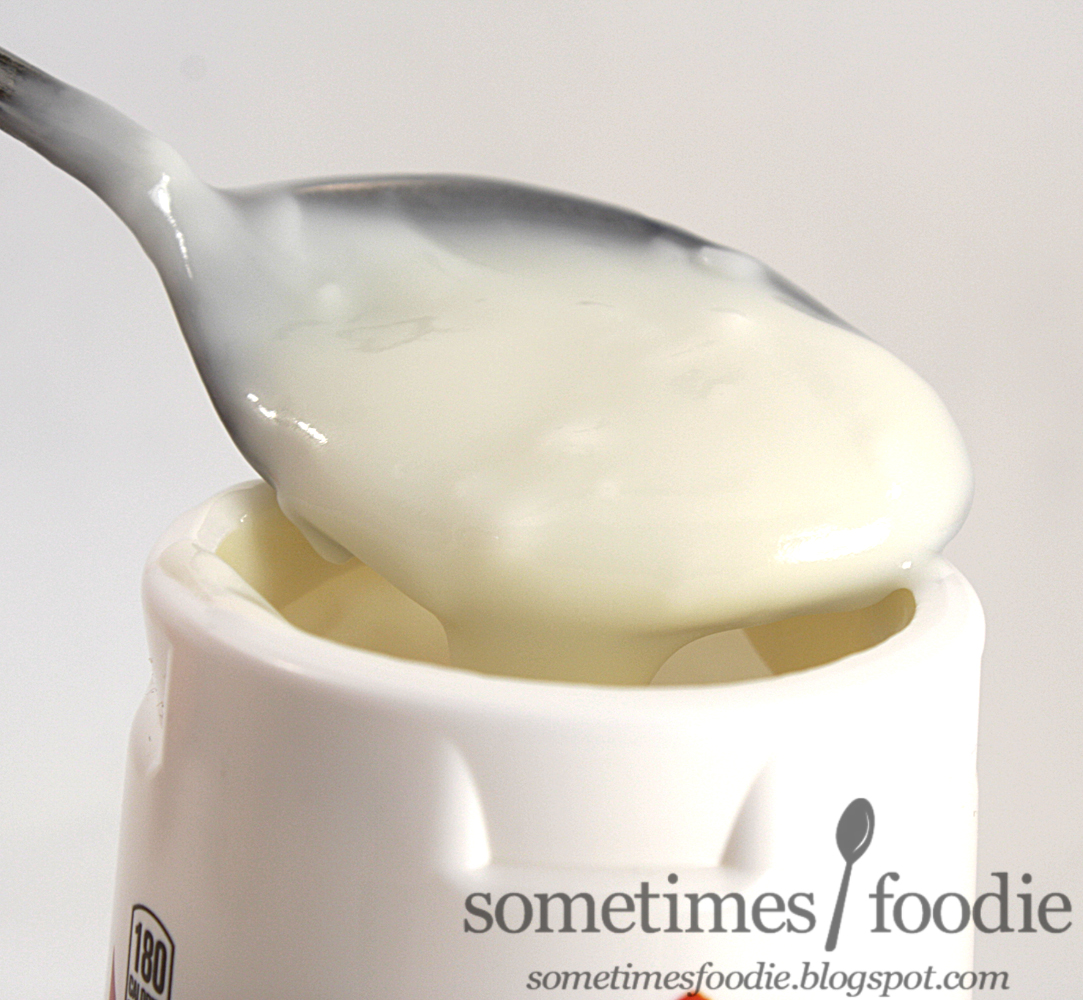 I peeled back the foil lid and the yogurt was white. Not tan, beige, or even an off-white. That seems so wrong to me. Where's the caramel? Why isn't this even a slightly beige or tan color? Does that mean all the caramel flavoring is artificial? Like those clear fake sugar syrups people add to coffee? It may not look like much at all, but when I tried smelling it, this plain looking mixture smelled a lot like the Girl Scout cookie! What kind of witch craft is this? It's lacking the chocolate notes, but I can smell caramel and toasted coconut. It's really bizarre. This looks like plain yogurt, but it honestly does smell like a cookie or baked good. The looks might have made me a little weary, but the scent brought back all my excitement for this flavor.