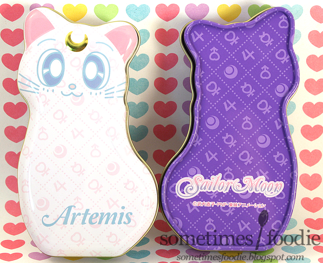 My only real complaint about these tins would be the repeating pattern that features the sailor senshi's symbols. I get what they were going for, it looks like the repeating patterns on designer handbags, which is kind of cute, but I personally would have left it off. Out of the two, Artemis looks okay, but the pattern on Luna distracts from her features. I think the pattern is fun, and adds interest, but it should have been limited to the sides and the bottom of the tins, not the lids.