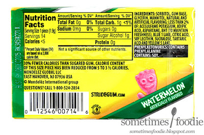 Stride and Sour Patch have teamed up to make gum flavors that are similar to their jelly-candy line, and I think it's a really cool idea. Although I've only tried the red-berry version so far, it was pretty enjoyable, and I'm excited to see how this watermelon version works out. Especially since those sour watermelon slices were one of my favorite candies growing up.