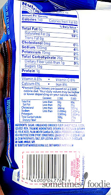 A year ago, all of the limited edition flavors came in packages that were the same 15.25 oz size as the classic and Golden Oreos, but somewhere along the line (I think it was when the Reese's Oreo was re-released) they switched things up and went with a slightly smaller square-shaped 10.7 oz package. All of the limited edition flavors, even re-released ones, have been in these square-ish packages which is both good and bad. It's good because having this unique shape helps the packages stand out when they are stacked vertically on the shelves. (Which is something I mentioned in a lot of my older reviews. When stacked vertically, a lot of the specialty flavors are hard to distinguish from the normal line-up of flavors.) So now the packaging looks different and stands out, which is good, but you get less cookies, which sucks.