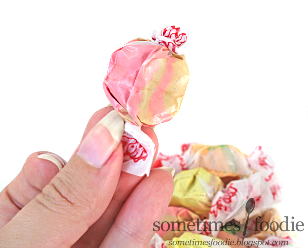 Since it's really humid, and my photo light are bright, unwrapped, all of the taffy was a sticky mess, so there are no unwrapped or bite-shots today.