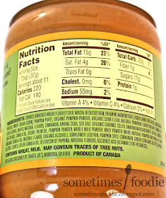 Other than the plastic to glass switch-up, the label is a bit skinnier and it doesn't follow the exact layout as the other cookie butters so it doesn't quite fit in with the line up. The colors have been switched to a garish green and orange combination (to be more pumpkin-y of course), and the label's overall appearance is less refined. It's not terrible, but when compared to normal cookie butter labels, this is the black sheep of the design family.