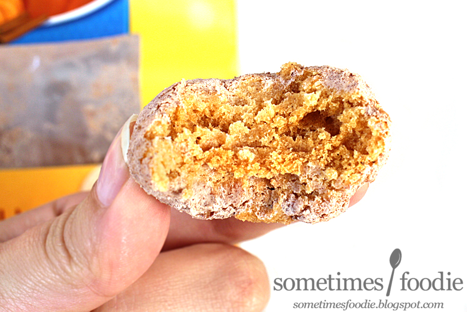 I opened the bag, and the spiced coating smells sweet, cinnamon-heavy, and a little bit like pumpkin pie filling. I have to mention that the aroma is pretty artificial, and on the processed side, but this is Tastykake. I don't think any of you would open this and expect fresh baked doughnuts, or a gourmet French pastry. It's processed cake doughnuts sold in a bag at the grocery store. For what this is, the smell is pretty appealing. (Although I am a Tastykake hater.) Okay, let's give this a try...