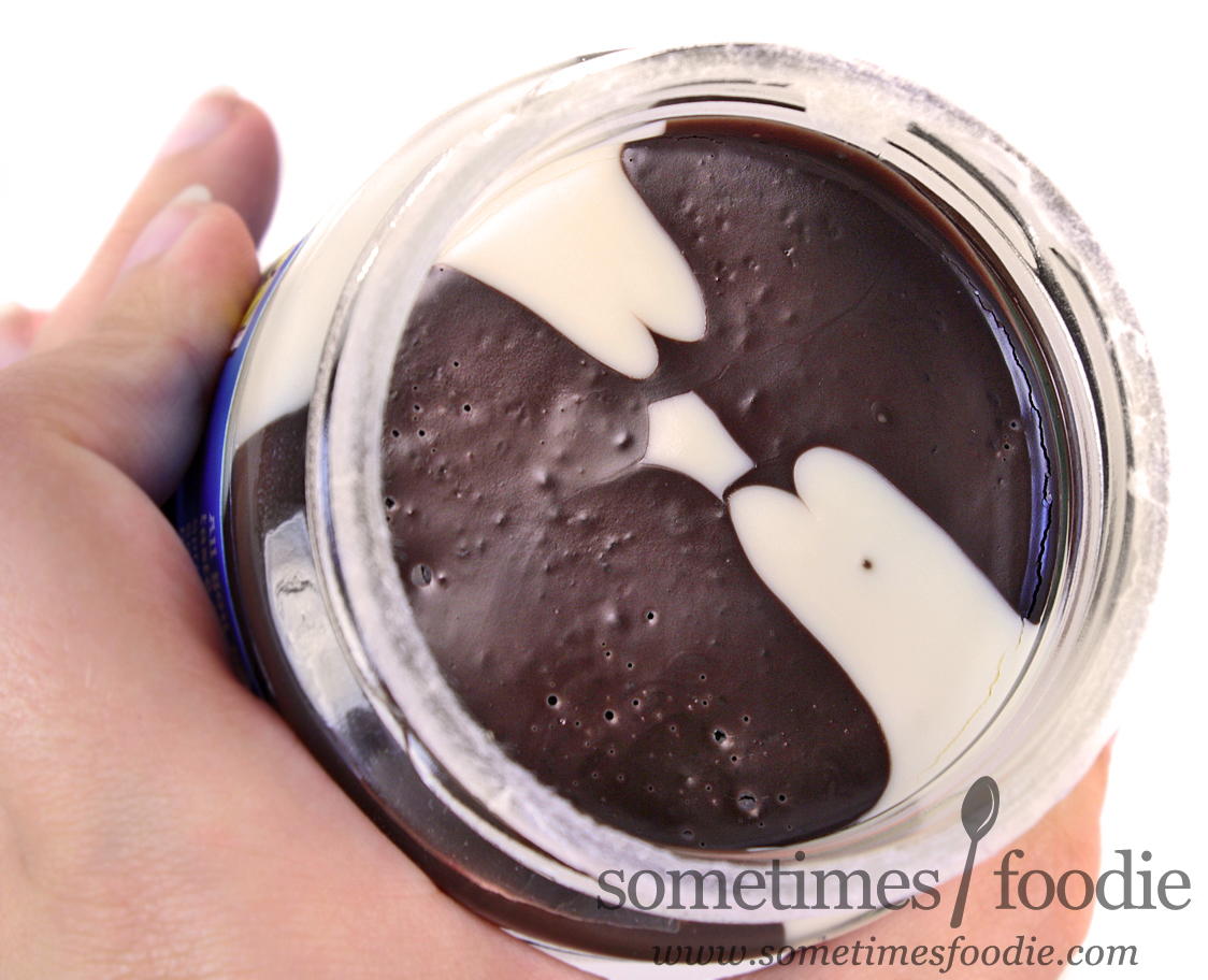 Thankfully I didn't judge this book by it's UGLY cover, and I bought it anyway, because it tastes AMAZING. The chocolate swirled portions taste like crushed up, spreadable, Oreo cookies with little crumbly textured bits that remind of of crunchy Biscoff spread. Of the two flavors, the chocolate portion is my favorite and I found myself carving away it it more than the white "creme" layer, but I've always preferred the chocolate cookie to the white creme when it comes to sandwich-style cookies. The white "creme" portion of this spread isn't half bad either, it's just not my favorite of the two. This filling-like portion of the jar isn't as waxy and shortening-based as the creme you'd find in a real Oreo or off-branded chocolate sandwich cookie, and when you combine the two, it's all the flavor of a sandwich cookie, but in a spreadable paste that will make you hate yourself in the morning.