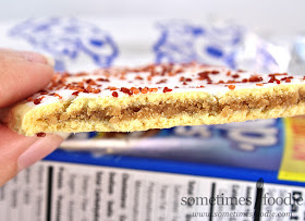 The pouches are silver, like usual, and the pastry inside has the classic vanilla-cracker-like crust with a white icing and tiny little sprinkles? Wait...I think these are actually itty bitty bacon bits?