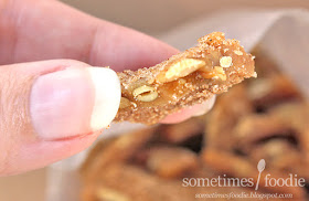 I took a bite, and the sealed bag kept everything surprisingly fresh. The brittle had a really satisfying snap to it. Judging by the texture you'd never guess it was over half a year old and sitting around my room for ages. (Thank you little plastic bag for hiding the effects of my neglectful food hoarding tendencies.) Normally I'm not a big fan of seeds and nuts in my candy, even if it's brittle, but the added crunch and slightly savory roasted seed flavor balanced the sugary caramelized brittle preventing it from being too overbearingly sweet. However, the added pumpkin spice coating on the outside does amp up the sweetness factor quite a bit, even if it does amplify the overall pumpkin pie flavoring. After a few bites I found myself dusting off the extra sugar on the outside to make this stuff a little less intense and cloying, but other than that I thought it was great.