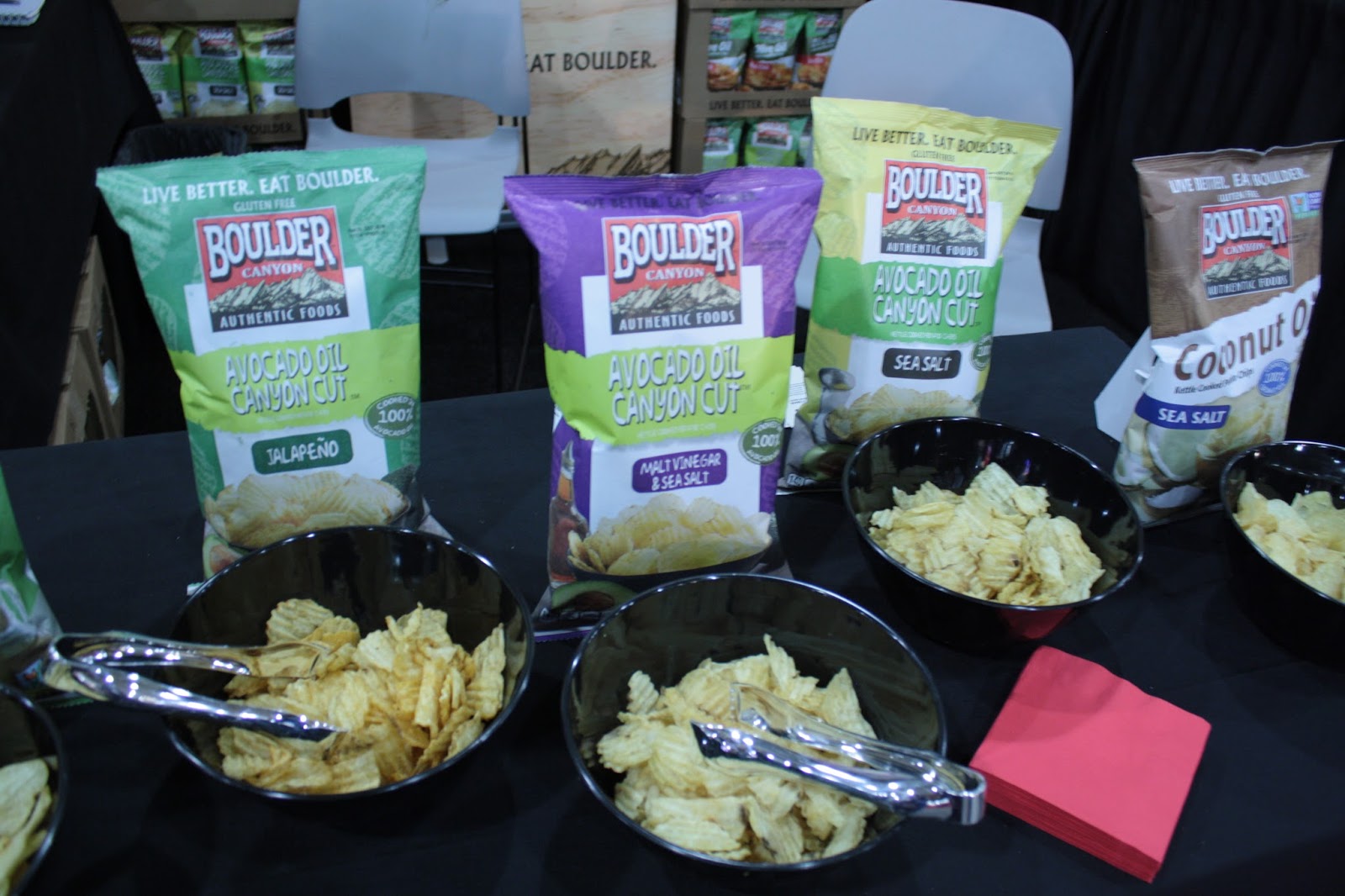 | My beloved Avocado Oil salt & vinegar chips <3 No one was at this booth, so I couldn't tell them how much I loved their product, but if you're reading this, the vinegar ones are the best! You should have sample sizes of that one! It's way better than the normal sea salt ones you had at the table. |