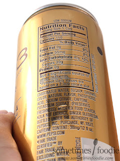 The can is shiny, like a gold bar, which looks really elegant in person, but this was a NIGHTMARE to photograph! Photogenic packaging isn't an issue for the average consumer, but let me tell you, I was cursing in my photo set-up trying to get decent shots. In this heat, with those photo lights, it wasn't pretty. Other than the gold color, the can is practically identical to the Original version I reviewed earlier this week. It's simple and classic, but modern. It looks very different from the rest of Pepsi's offerings and I like it quite a bit.