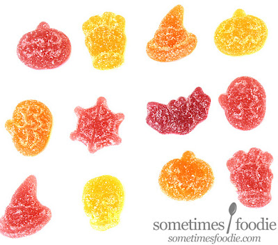 On this handy-dandy resealable plastic bag we have a clear pumpkin-shaped window, a giant pumpkin-version of the logo, and illustrations showing that the sweets inside are shaped like spooky seasonal items! With all this stuff going on with me moving into a new house, and my job, and tons of paperwork...I am burnt out on adult-ing. I wanted to be a kid again and photograph something fun to review, and thanks to the bag I decided that this was going to be it!