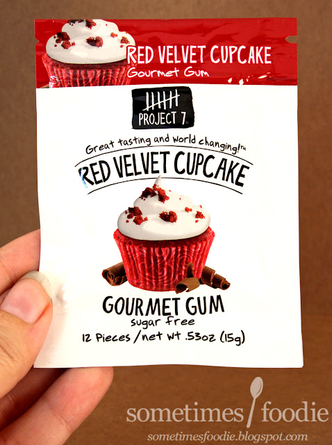 You tell 'em O'Neill! I grew up watching cooking shows, so even though I know that Red Velvet Cake is indeed a real thing, and a Southern tradition, I can't help but agree with him. The sudden surge of products and popularity we are seeing is a total scam coasting on tons of food dye and all of the food companies out there are getting in on it. We have Oreos, yogurts, m&m's, and now? Chewing gum. Even Project 7 isn't immune to the trendiness of this red-hued wannabe. I love this company and their concept, but I hate the trendiness of all this red velvet cake nonsense, so let's see if trying this gum will make any difference in my velvet-y stance.
