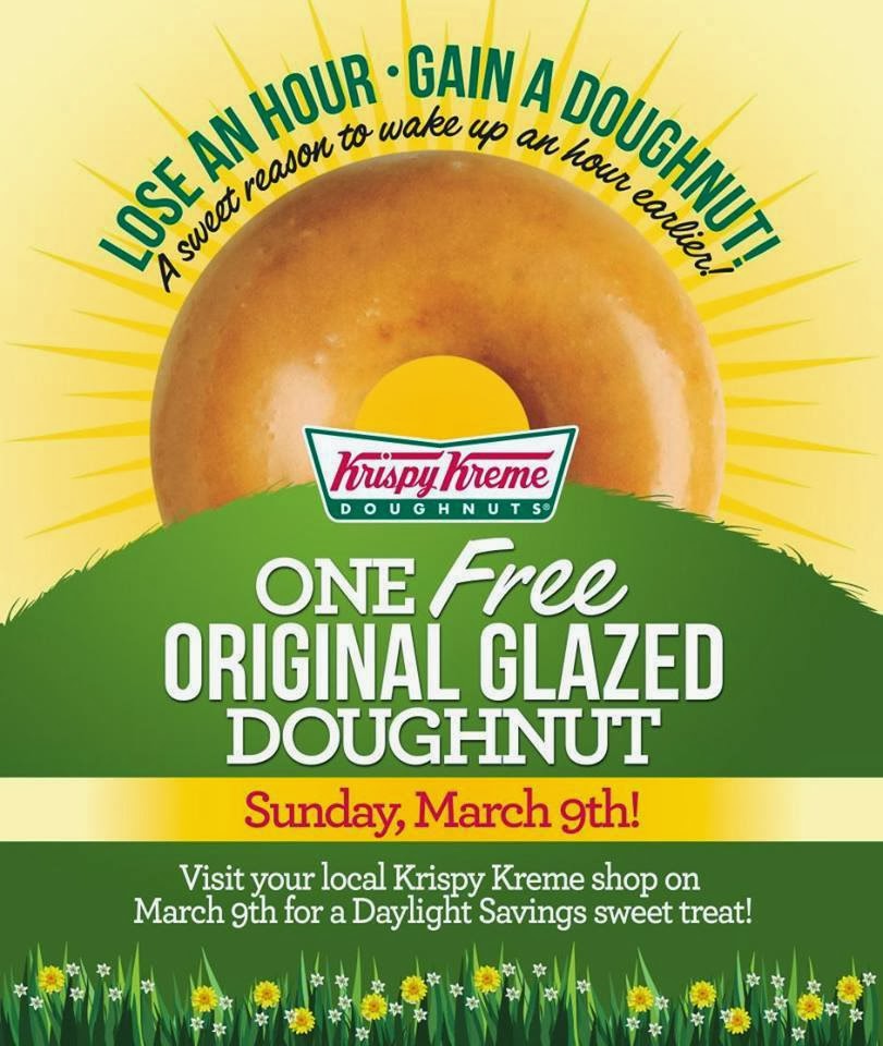 Yesterday we lost an hour (due to daylight savings), but Krispy Kreme softened the blow by offering all of their customers a free glazed doughnut!